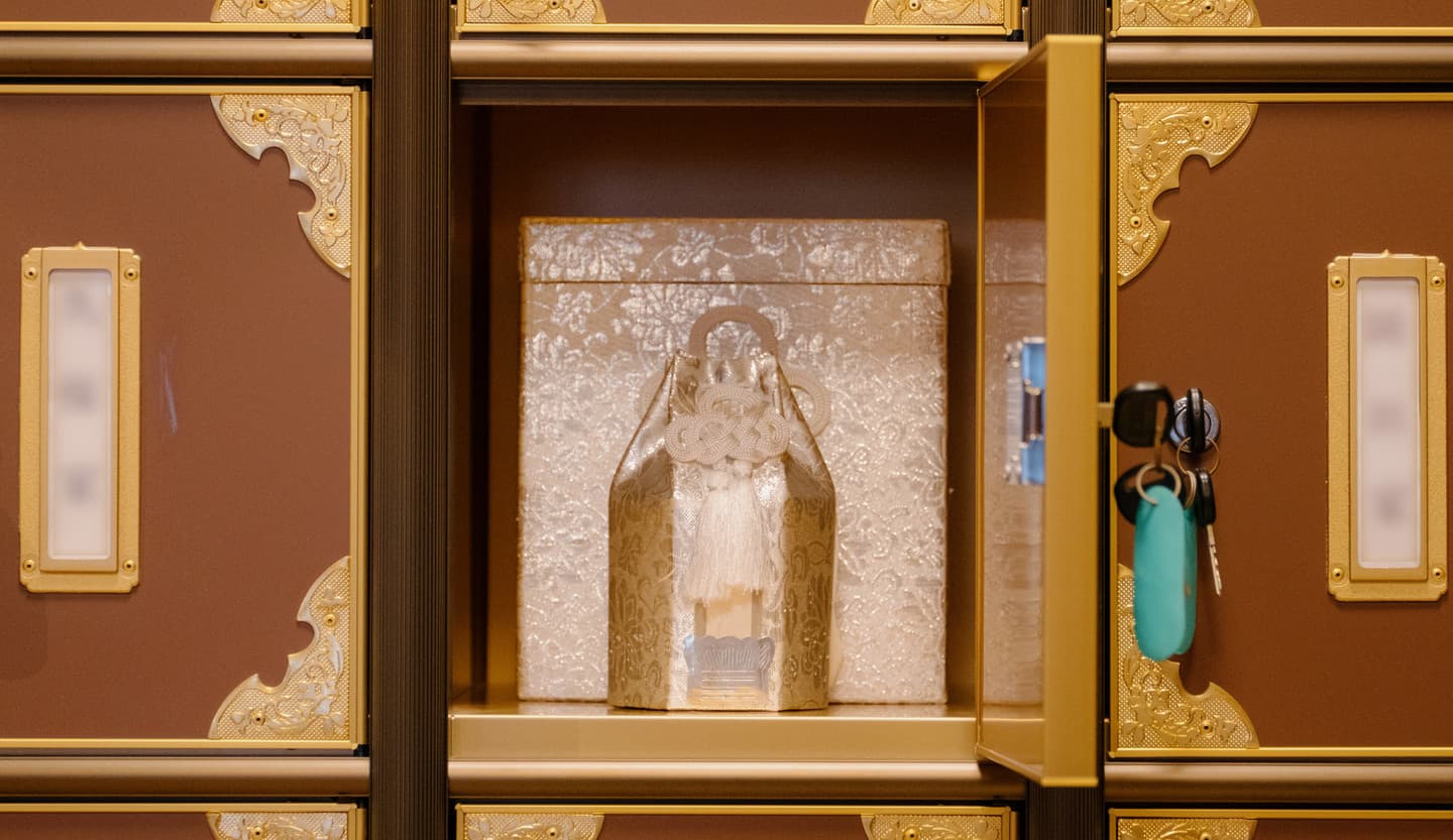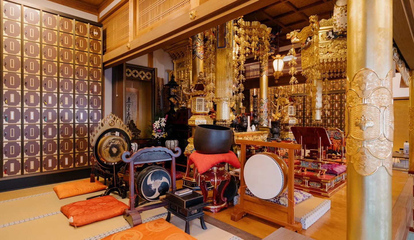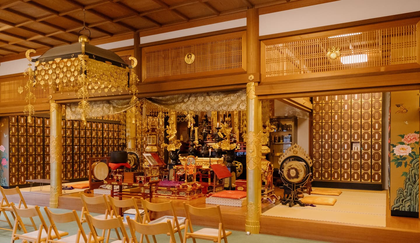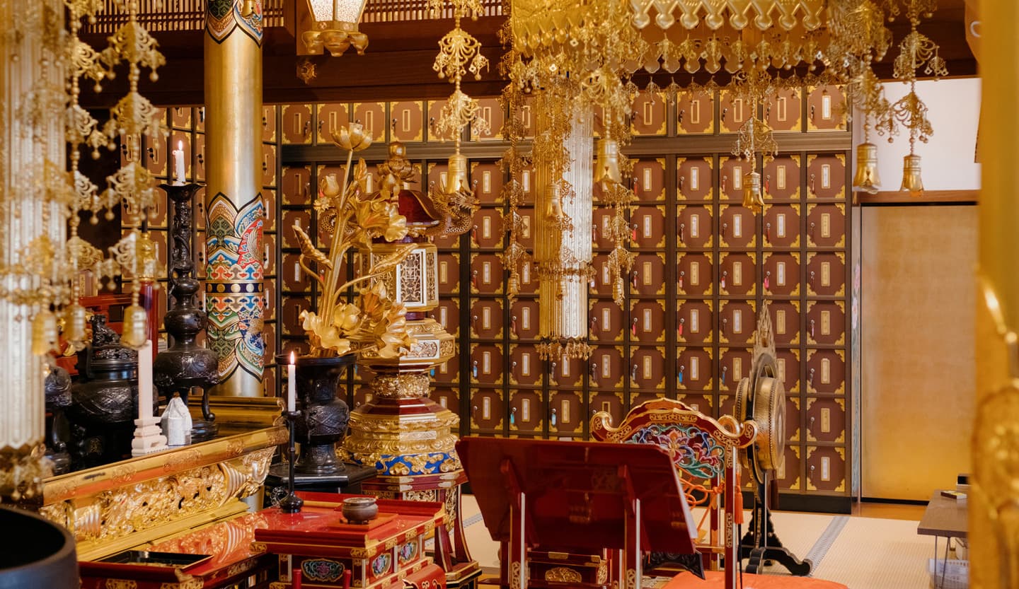 当寺院の特徴は本堂の仏様の両脇に納骨壇があります。別棟、ビルではないので、日々読経の声が聞こえ、仏様に守られております。予約をしていただき、ゆっくり本堂内でお詣りすることもできますし、外から手を合わせたいというご要望から、本堂の正面の扉をガラス張りに変え、朝の通勤前、夜の通勤後など、24時間いつでも本堂の外から手を合わすことができるようになりました。