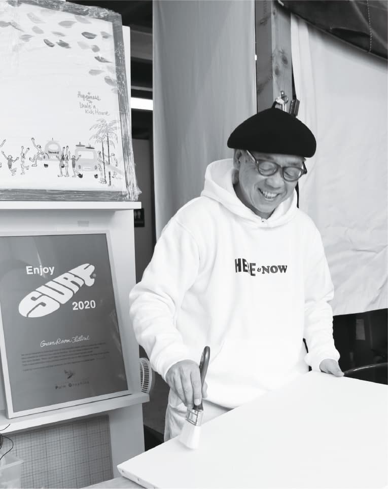 1962年 5月22日大阪生まれ。アーティスト子どもの頃から絵を描くこと、サーフィン、ファッション、音楽が大好き。1992年 30歳の誕生日にEnjoy SURFのロゴマークをデザイン。1997年 カリフォルニアで初のエキシビジョンを開催。カラフルでピースフルな絵画作品の他、各国様々な企業やブランドとのコラボレーションを通じて独自の世界観を表現し続けている。