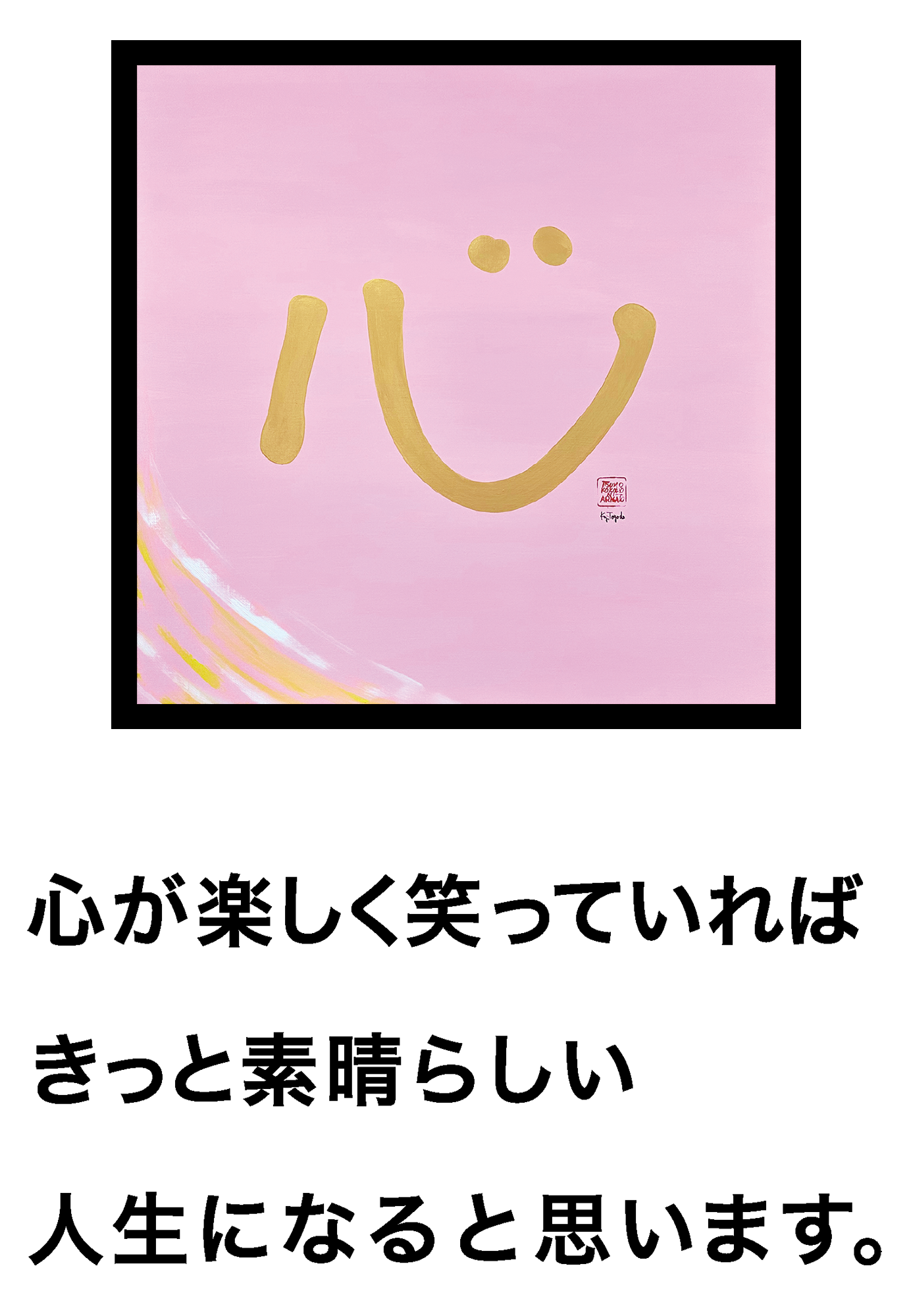 昨年は、ショッキングなことが多く恩師、先輩、親族が天国に旅立たれました。あまりにも、あっけなく悲しみと寂しさが心の中に残り、人生ってほんと、あっと言う間なんだなぁ〜と実感していました。そんな時、高野山 総本山金剛峯寺さんからオファーがあり、ありがたいことに個展をさせていただく運びとなりました。雪で真っ白な高野山の帰りの電車の中でパ〜ンっと頭に「心」という文字が浮かび、直ぐに制作し、今年の春に開催させていただきました。そして、ご来場くださってた正福寺の知隆さんから今度は、僕と息子とのコラボ作品を襖絵として表現して下さいとオファーをいただき僕の「LIFE」という波を人生に例えた作品と息子が表現する「THE STARS」を合わせたスケール感ある作品に仕上げてみました。テーマは、ご縁を大切にするということで、この襖絵をご覧になってくださる方々も何かのご縁でご覧くださっていると思います。そうなんです。その積み重ねが人生だということをこの襖絵にそんな想いを込めています。